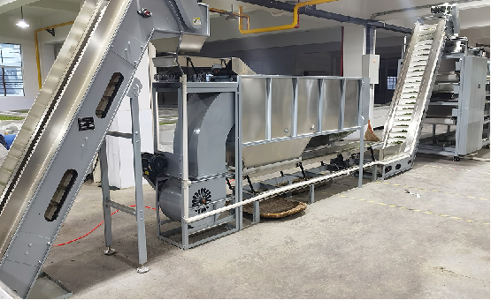 機組組成:本機組由進(jìn)料輸送機、勻葉振動(dòng)槽、風(fēng)選機、出料輸送機、機組集成控制系統組成。