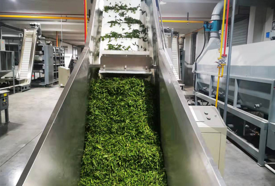 茶葉輸送機是茶葉加工生產(chǎn)線(xiàn)的重要組成部分,分皮帶式、振動(dòng)槽式等,可平面輸送、高低錯位輸送,根據需要再配套勻葉、清理、調速、除塵等裝置,在整個(gè)生產(chǎn)線(xiàn)中起到連接主機、控制產(chǎn)能、平衡流量等功能,是生產(chǎn)線(xiàn)實(shí)現不落地、清潔化生產(chǎn)必不可少的配套設備。